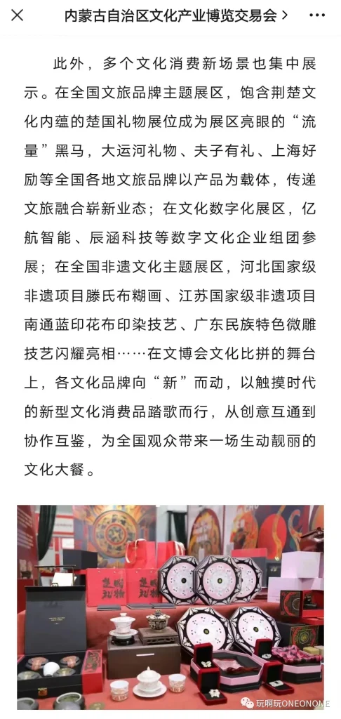 内蒙古文博会评:“在全国文旅品牌主题展区,饱含荆楚文化内蕴的《楚国礼物》展位是展区亮眼的“流量”黑马。”