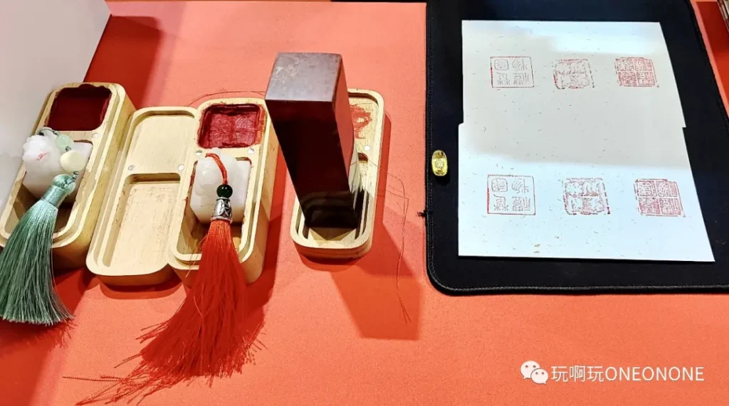 《楚国礼物》此次特地带来了传统手工藕丝印泥和非遗篆刻印章,前来打卡盖章的游客络绎不绝,传统印泥具有特定的配方和制作技艺,凝结了中国传统文化的精华,中国书画艺术创作中不可或缺的用品,是传统文化的物质载体之一,对于弘扬传统文化具有重要意义。